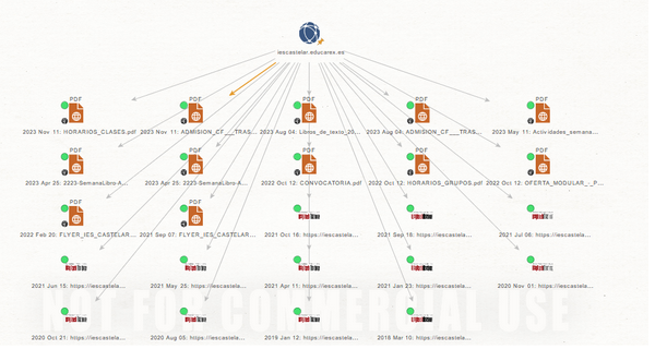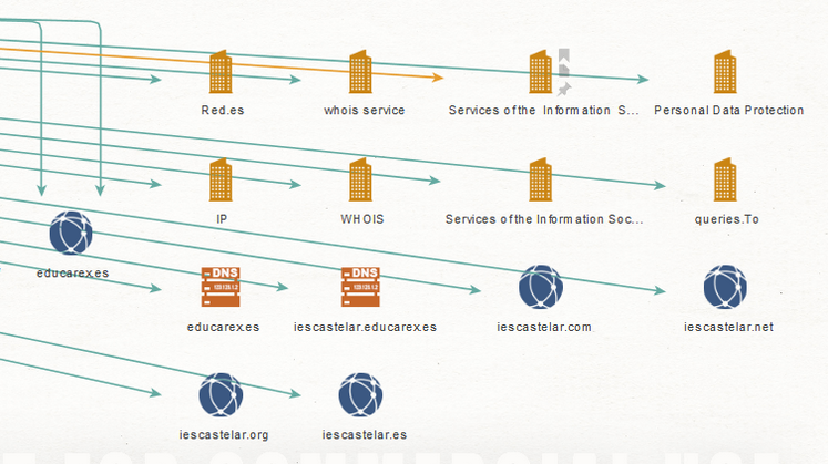 Como podemos ver hemos encontrado otros dominios y dos DNS, uno de educarex.es y otro de iescastelar.educarex.es. Si queremos seguir indagando en alguna dirección más basta con hacerle otra transformación a ese dominio y seguir sacando información de la información.