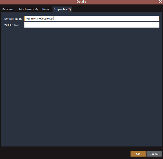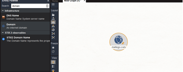 Esta prueba se va a enfocar en usar como objetivo un dominio público, en nuestro caso va a ser la página del instituto Castelar. Para ello buscamos el apartado de domain y la arrastramos al grafo: